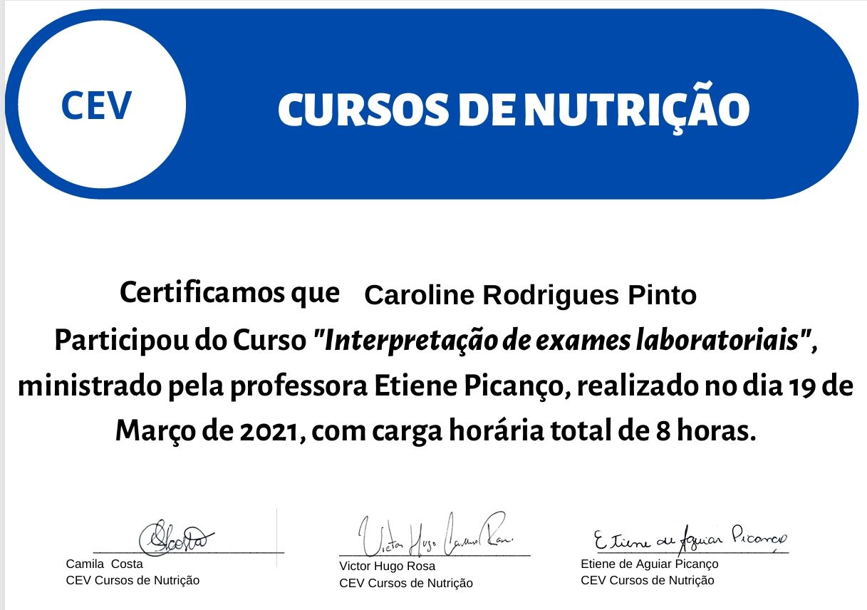 Quais são as principais especialidades de Caroline Rodrigues Pinto?Caroline Rodrigues Pinto é nutricionista. Te mostramos alguns dos serviços oferecidos pelo especialista graças à sua trajetória e vasta experiência: Primeira consulta Nutrição, Consulta de nutrição, Avaliação antropométrica, Teleconsulta.
