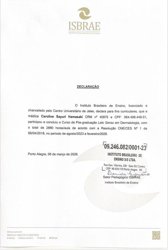 Você já passou por consulta com Dra. Caroline Sayuri Hamasaki? Conte aqui como foi. Outros pacientes vão te agradecer por ajudá-los a escolher o melhor especialista.