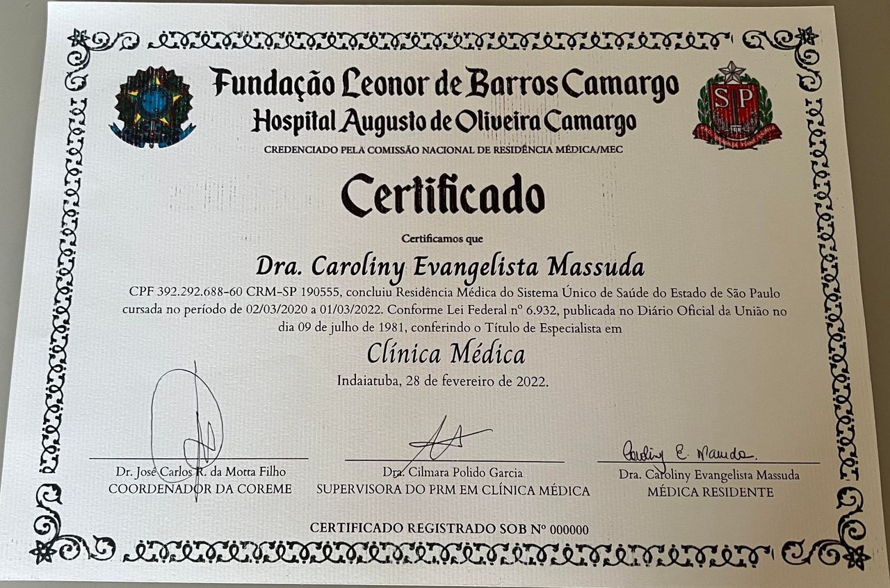 Olá, sou a Dra. Caroliny Evangelista Massuda! Sou médica formada pela PUC Sorocaba e especialista em Clínica Médica pelo Hospital Augusto de Oliveira Camargo (HAOC). Com mais de 8 anos de experiência na área, dedico minha carreira a cuidar das pessoas de forma acolhedora e individualizada, sempre buscando compreender as particularidades de cada paciente. Minha abordagem é focada no cuidado integral: durante a consulta, procuro entender suas queixas, rotina, hábitos e histórico de saúde para criar um plano de tratamento personalizado e eficiente. Acredito que um atendimento humanizado e empático faz toda a diferença na construção de confiança e no sucesso do tratamento.