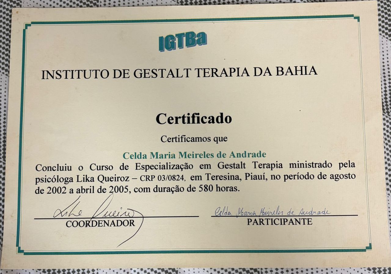 Tenho prazer imensurável de falar sobre essa profissional que tanto me ajudou. É uma profissional de muita competência, responsabilidade , compromisso e amor pelo que faz. Posso dizer que ela me tirou do fundo do poço. Com suas sábias palavras me fez reviver. Hoje consigo sair na rua, ir ao supermercado, estou trabalhando. Tudo isso graças a Deus e a doutora celda