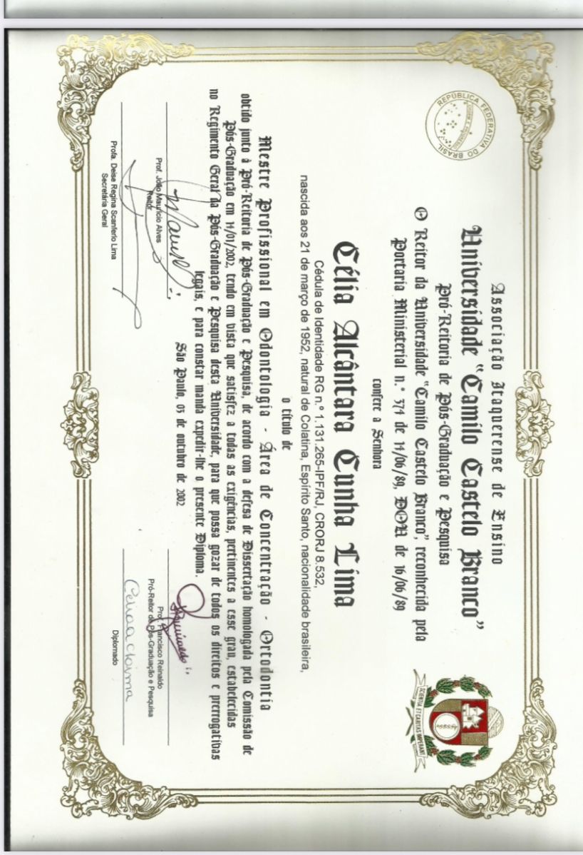 Coordenadora do Curso de Especialização em Ortodontia do UNIFLU de 2003 a 2019.