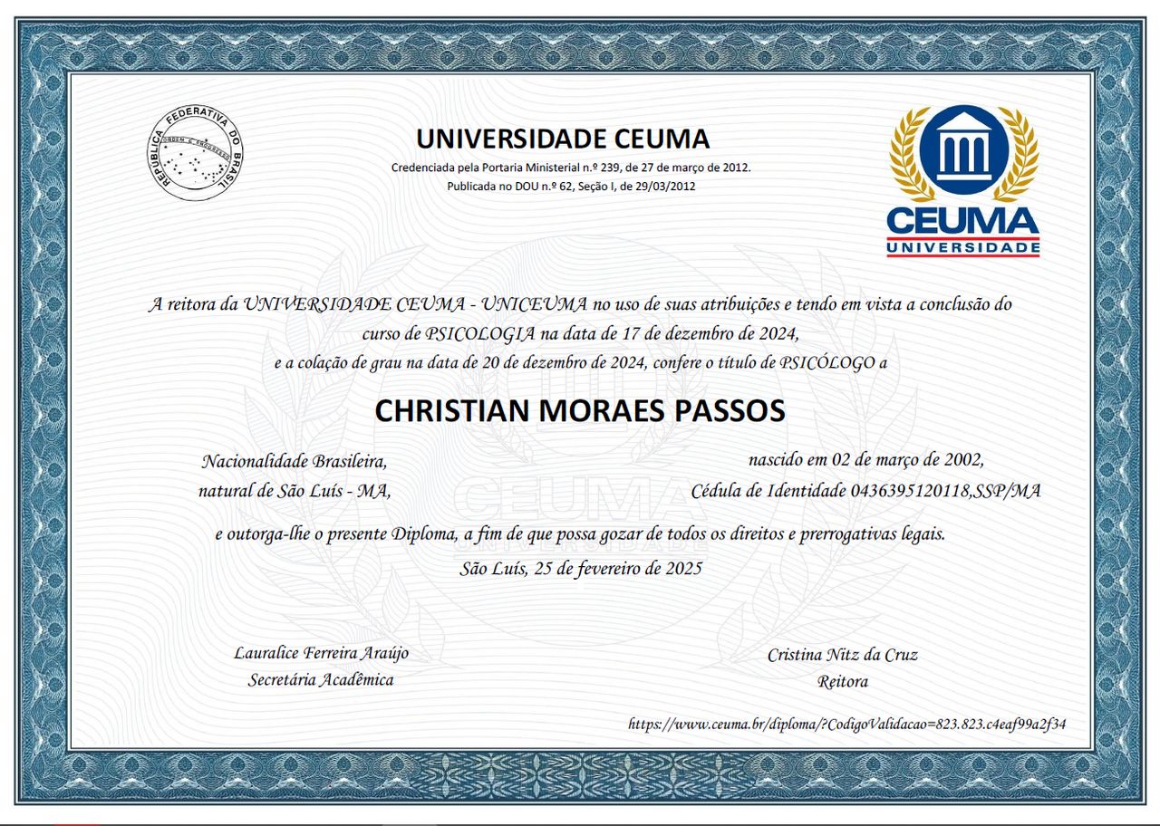 Me chamo Christian Passos, sou psicólogo, maranhense, apaixonado por música e cinema. Minha abordagem é a psicologia Histórico Cultural de Vigotski, que entende a influência da cultura e aspectos históricos e sociais na subjetividade humana. Sou pesquisador nas áreas da sexualidade humana e psicologia organizacional e do Trabalho, pelas quais tenho profunda paixão.