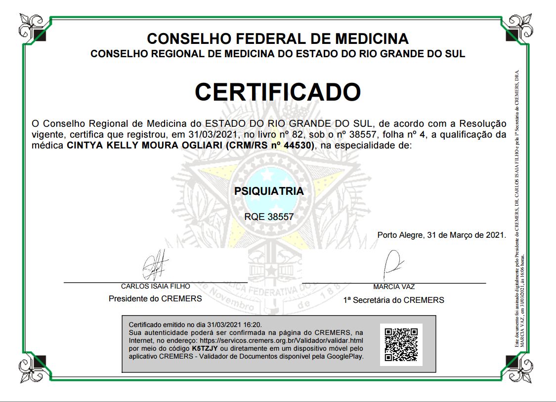 Sou formada em medicina pela UFRGS e fiz residência médica em psiquiatria no HCPA/UFRGS.