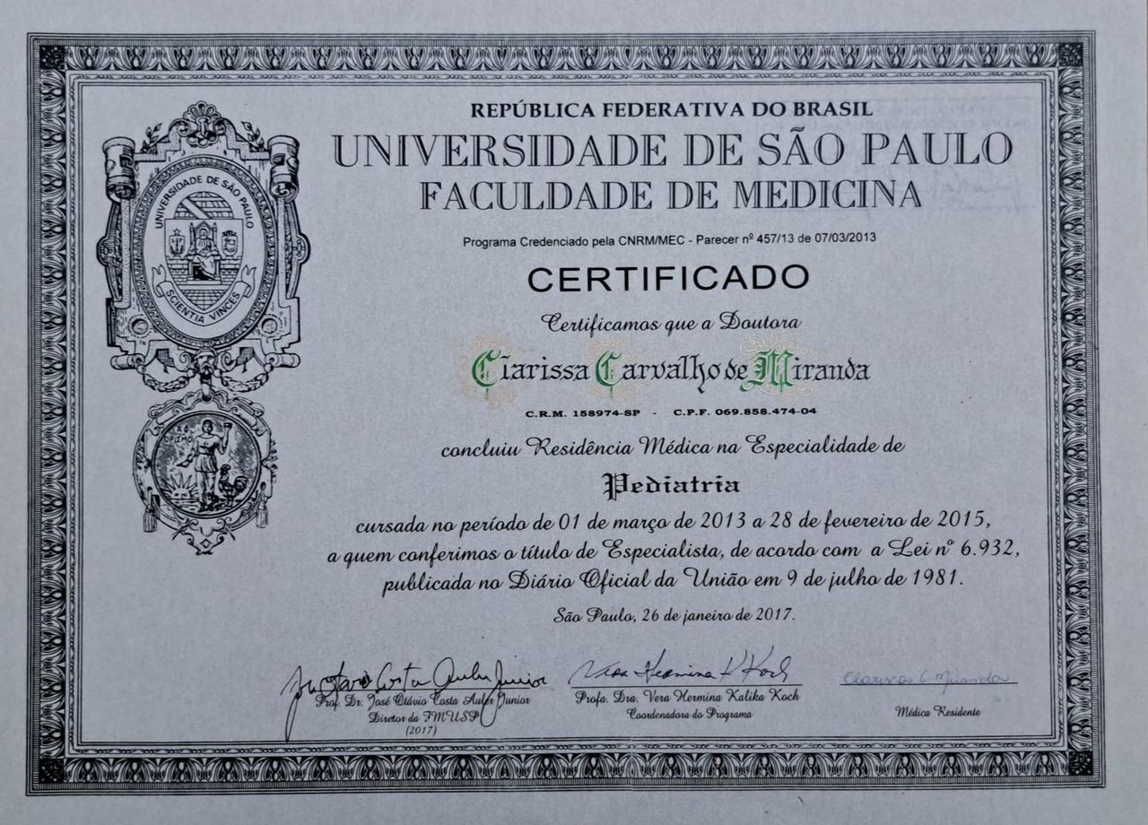 Sou Doutora em Ciências na Área de Pediatria pela USP (programa de Doutorado Direto, sem passar pelo mestrado) e já atuei como professora e preceptora em cursos de Medicina em Maceió.