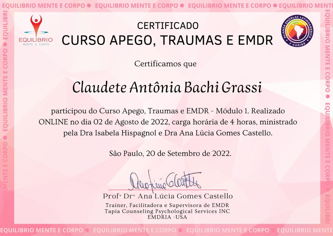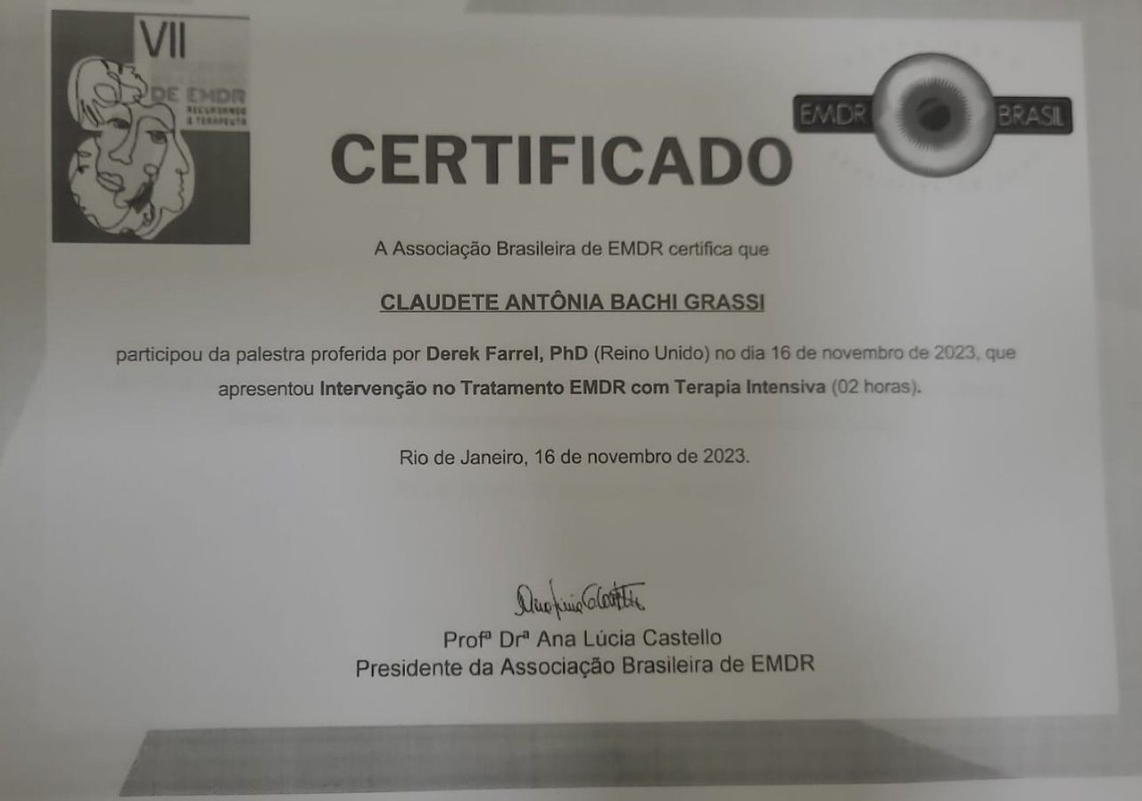• Psicóloga Clínica e Terapeuta EMDR: Sou especialista em EMDR (Dessensibilização e Reprocessamento por Meio dos Movimentos Oculares Bilaterais), uma abordagem inovadora e altamente eficaz no reprocessamento de memórias traumáticas e na redução do sofrimento emocional.
