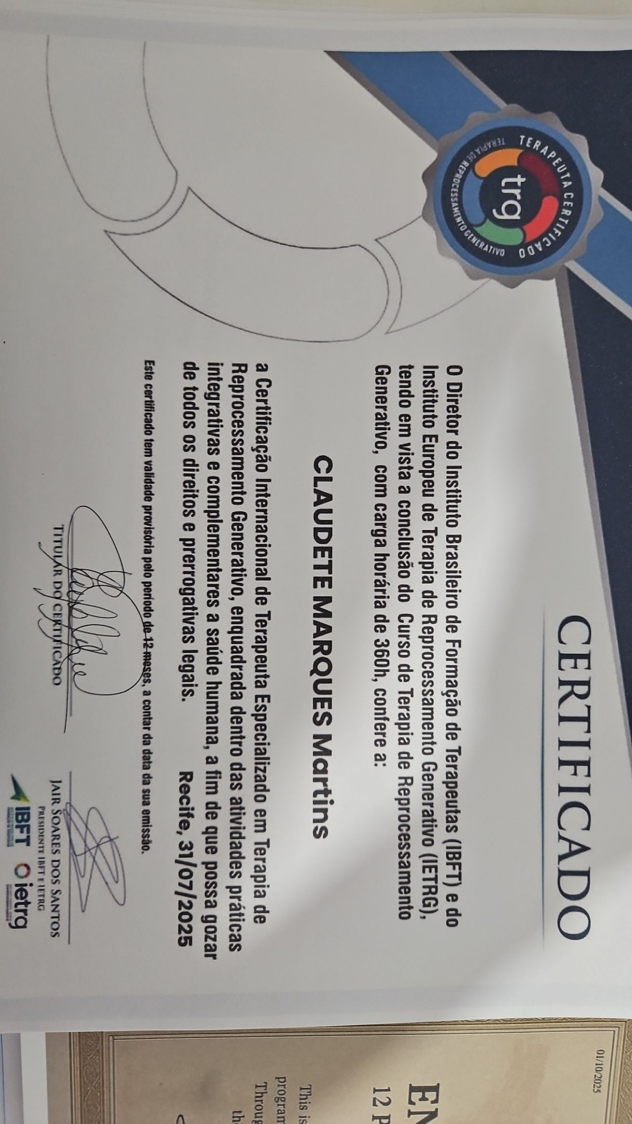 - Especialista em trg - terapia de reprocessamento generativo