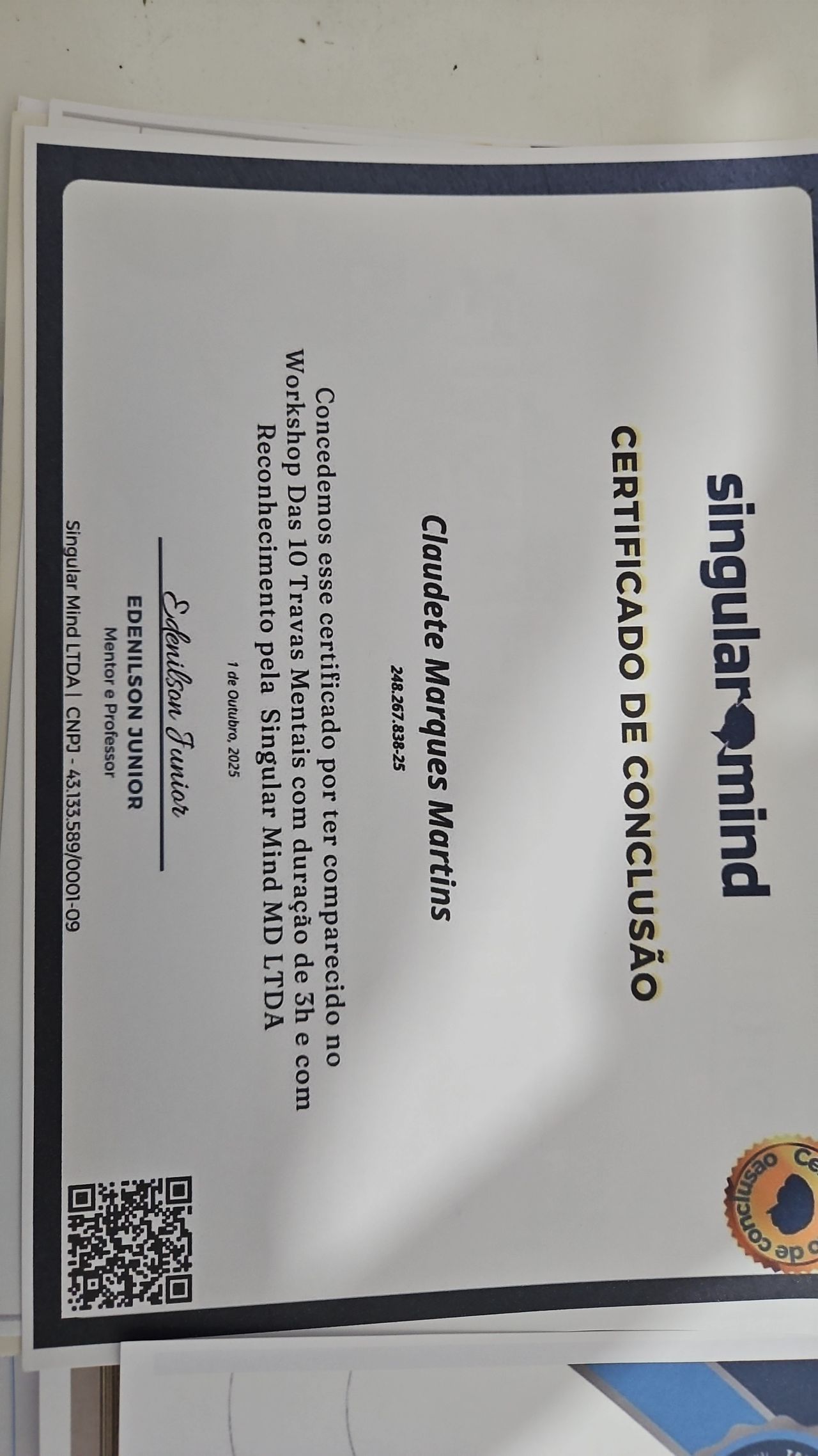 Número de registro: Certificado Apresentado