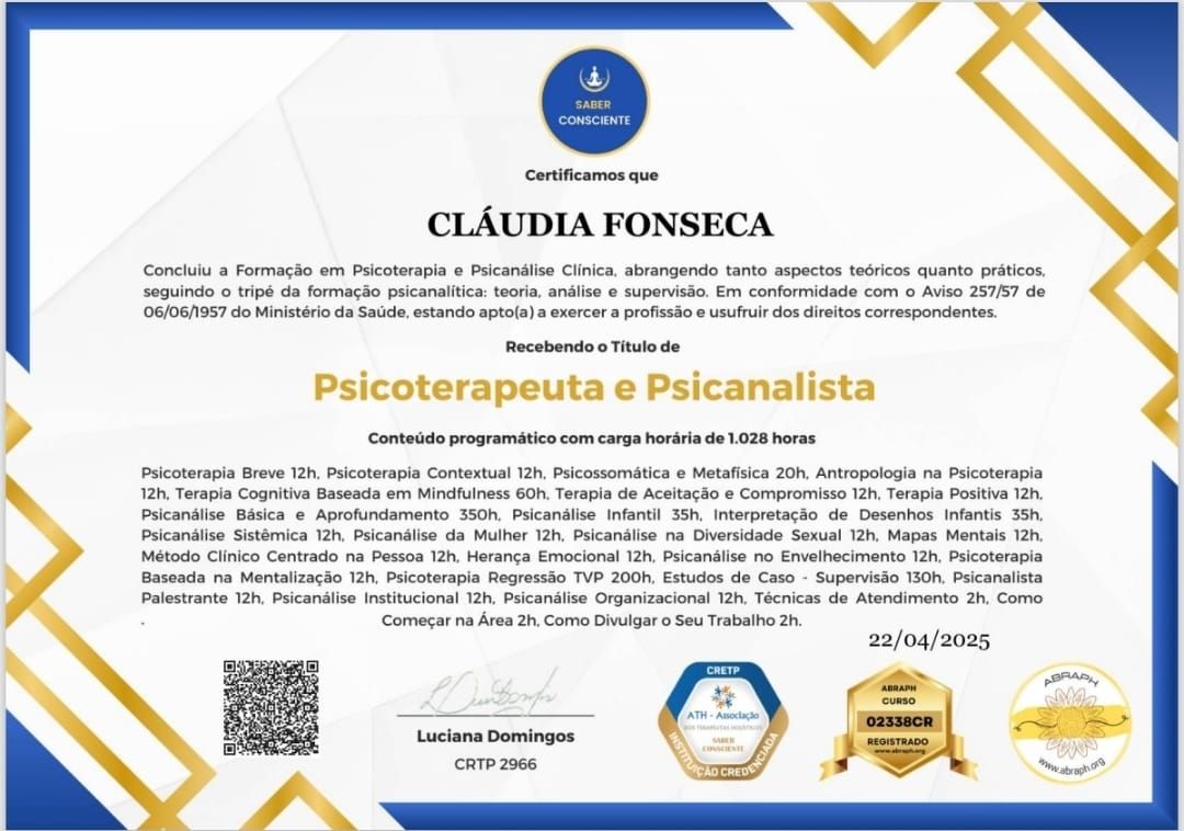 Sou muito grata pelo acompanhamento da Claudia, ela é uma ótima profissional. O cuidado, a escuta atenta e a sensibilidade no processo têm sido fundamentais para meu autoconhecimento e crescimento pessoal. Recomendo muito o trabalho dela!