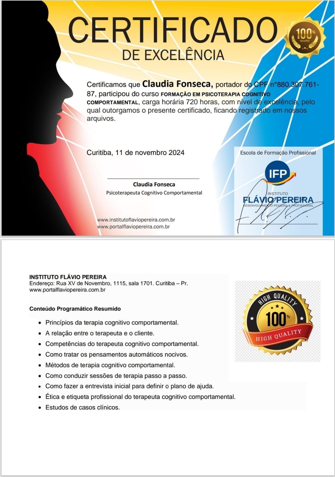 Quando poderia me consultar com Claudia Fonseca?Entre em contato diretamente com Claudia Fonseca para verificar sua disponibilidade.