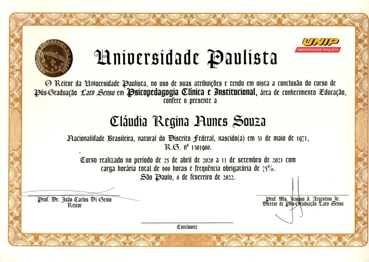 Em quais idiomas Cláudia Regina Nunes Souza atende?Cláudia Regina Nunes Souza atende em Português.