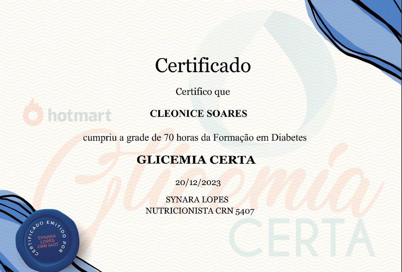 Cleonice Soares é nutricionista. Te mostramos alguns dos serviços oferecidos pelo especialista graças à sua trajetória e vasta experiência: Primeira consulta Nutrição, Consulta online, Avaliação alimentar e nutricional, Tratamento para emagrecimento, Reeducação alimentar, Protocolo nutricional 90 dias - mudança de estilo de vida e/ou emagrecimento, Preparo de alimentação para provas (atletas), Pacote de 4 consultas de nutrição, Pacote de 3 consultas de nutrição, Nutrição personalizada através do estudo do seu DNA.