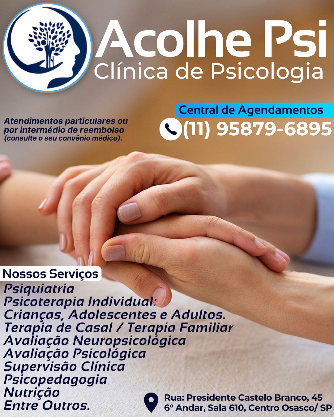 A Acolhe Psi oferece atendimentos nas modalidades presencial e on-line, abrangendo diferentes públicos e contextos:
