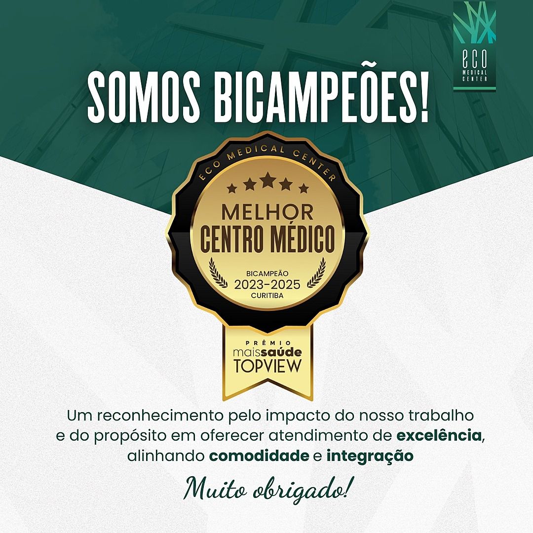 O Eco Medical Center, inaugurado em 01 de Junho de 2022, é o novo centro de referência em saúde de Curitiba, contando com mais de 20.000m² divididos em 13 andares de lojas, conveniências, clínicas e estacionamento próprio totalmente equipadas para proporcionar um atendimento ágil e seguro.