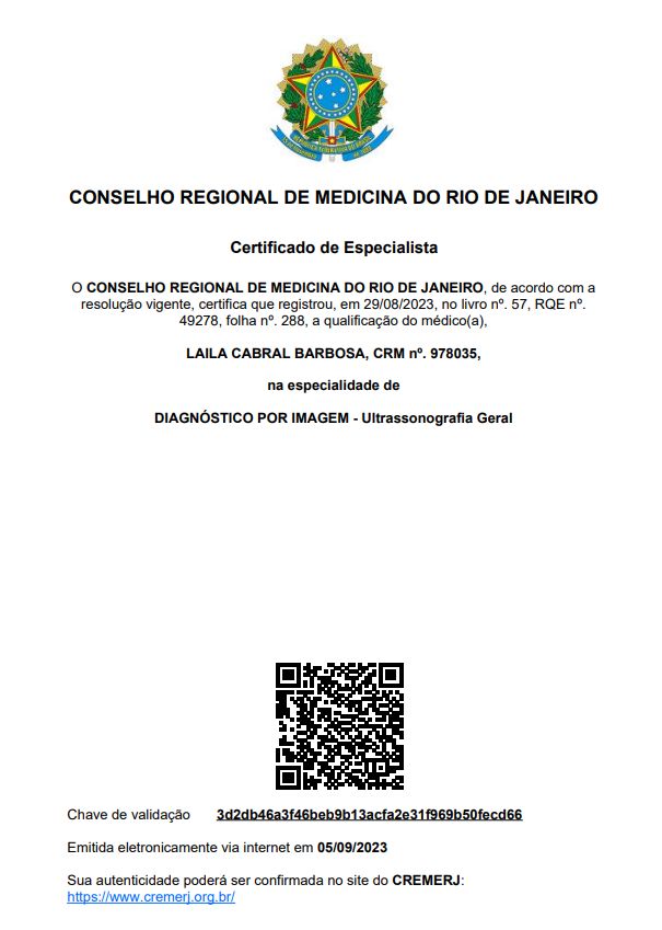 Gostaria de deixar registrado o meu agradecimento e admiração pela Dra Laila que me atendeu hoje. Sua atenção, cuidado e delicadeza durante o exame fizeram toda a diferença. É reconfortante encontrar uma médica tão humana, gentil e competente. Que seu dom continue trazendo conforto e confiança para muitas outras pessoas.