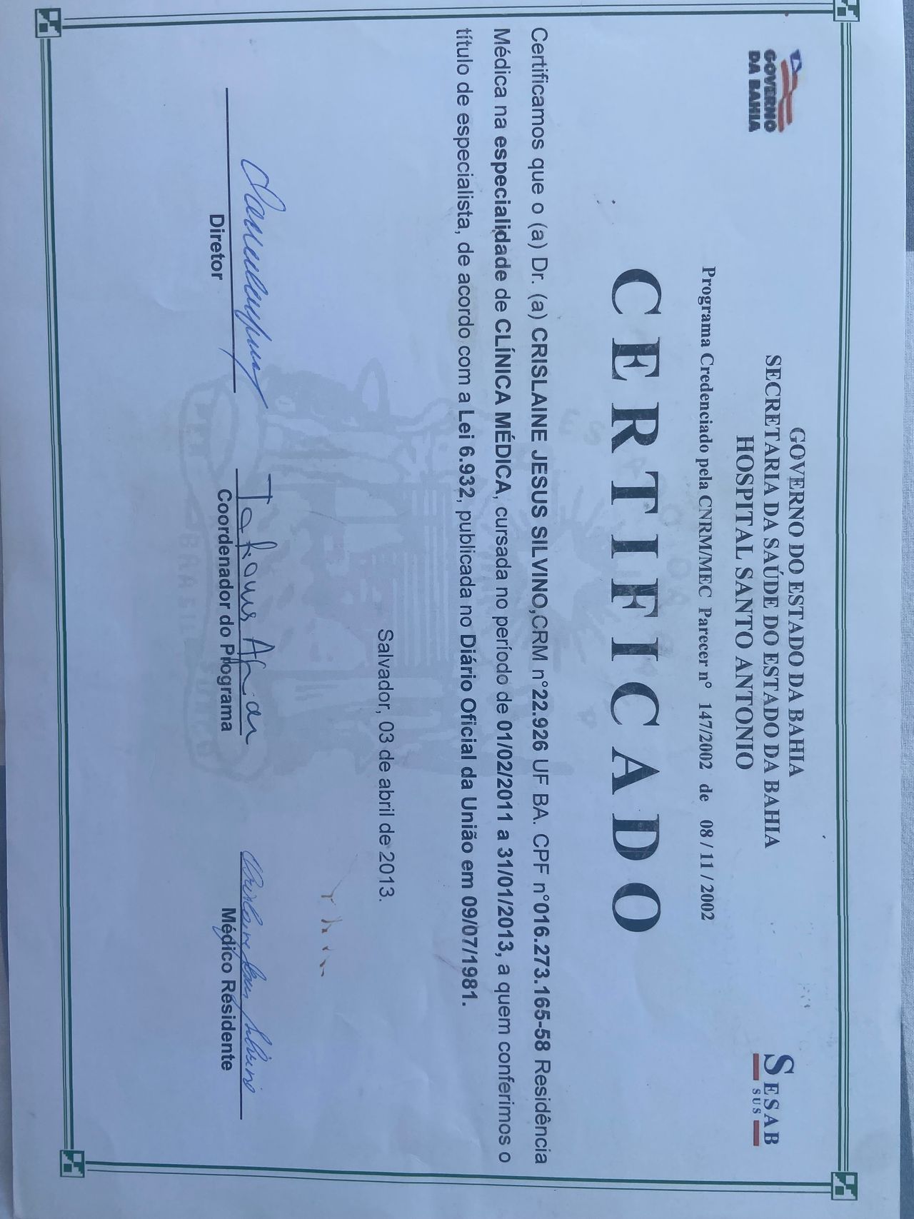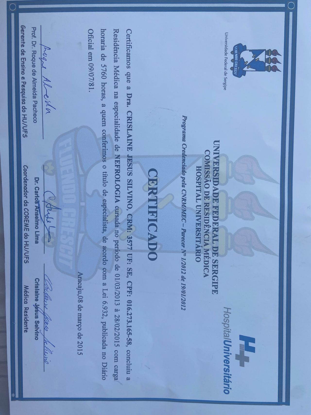 Número de registro: CRM SE 3577 - RQE 3885