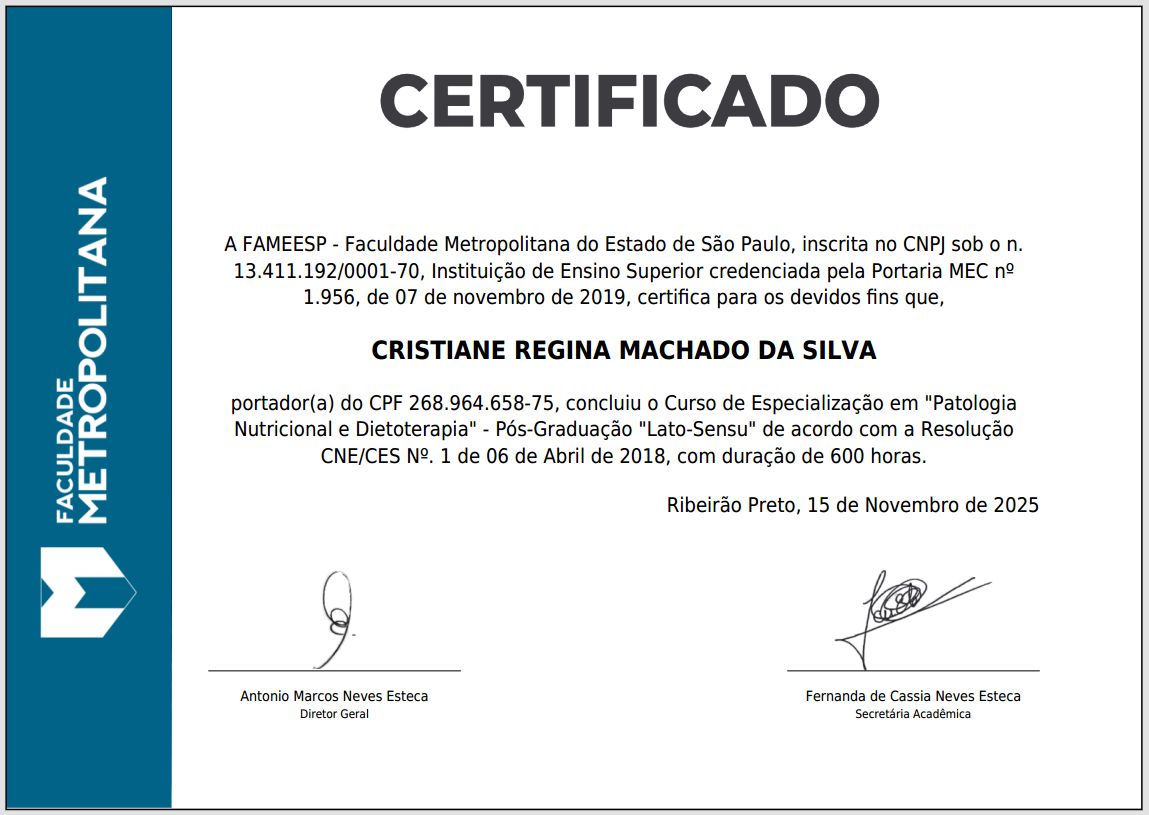 Sou pós-graduada em Nutrição Clínica e Patologia Nutricional e Dietoterapia, e pós-graduanda em Nutrição Estética e Saúde da Mulher, além de sempre estar em atualização através de cursos de formação. Atuo promovendo saúde e bem-estar de forma real — sem dietas restritivas ou “loucuras alimentares” através de uma reeducação alimentar para o cuidado com sua saúde e com ele o resultado de emagrecimento e/ou hipertrofia.