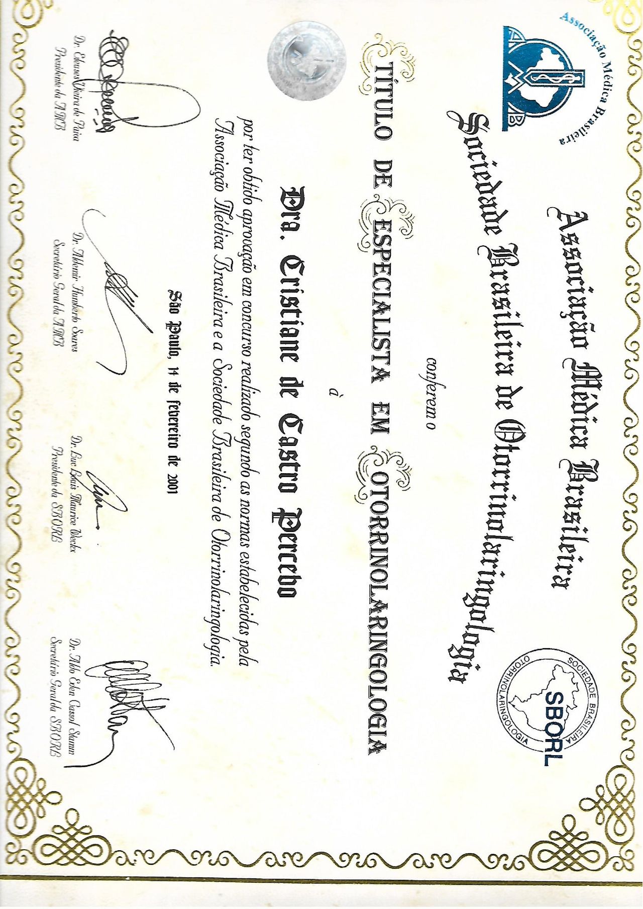 Quais são as principais especialidades de Cristiane de Castro Percebo Rinaldi?Cristiane de Castro Percebo Rinaldi é otorrino. Te mostramos alguns dos serviços oferecidos pelo especialista graças à sua trajetória e vasta experiência: Consulta Otorrinolaringologia.