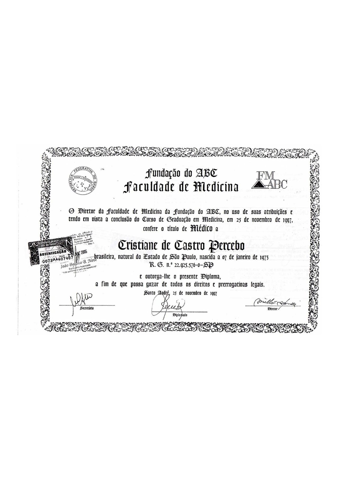 Quais são os convênios aceitos por Cristiane de Castro Percebo Rinaldi?Cristiane de Castro Percebo Rinaldi não especificou se aceita convênios. Recomendamos que você entre em contato com o especialista para saber se o seu convênio é aceito ou se você deve agendar de maneira particular.