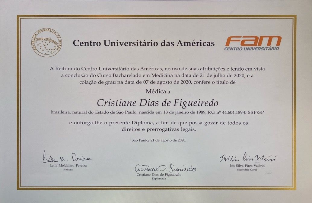 Quais são as principais especialidades de Cristiane Dias de Figueiredo Ferreira?Cristiane Dias de Figueiredo Ferreira é generalista. Te mostramos alguns dos serviços oferecidos pelo especialista graças à sua trajetória e vasta experiência: Teleconsulta.