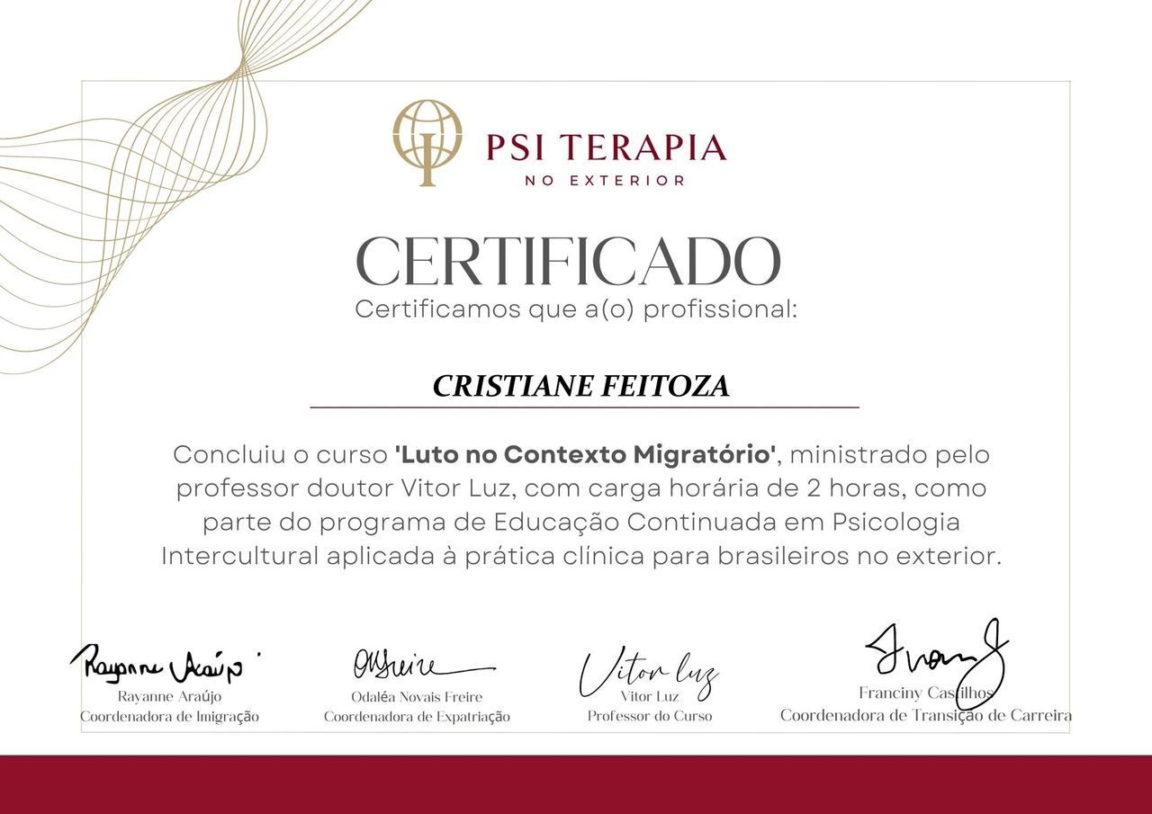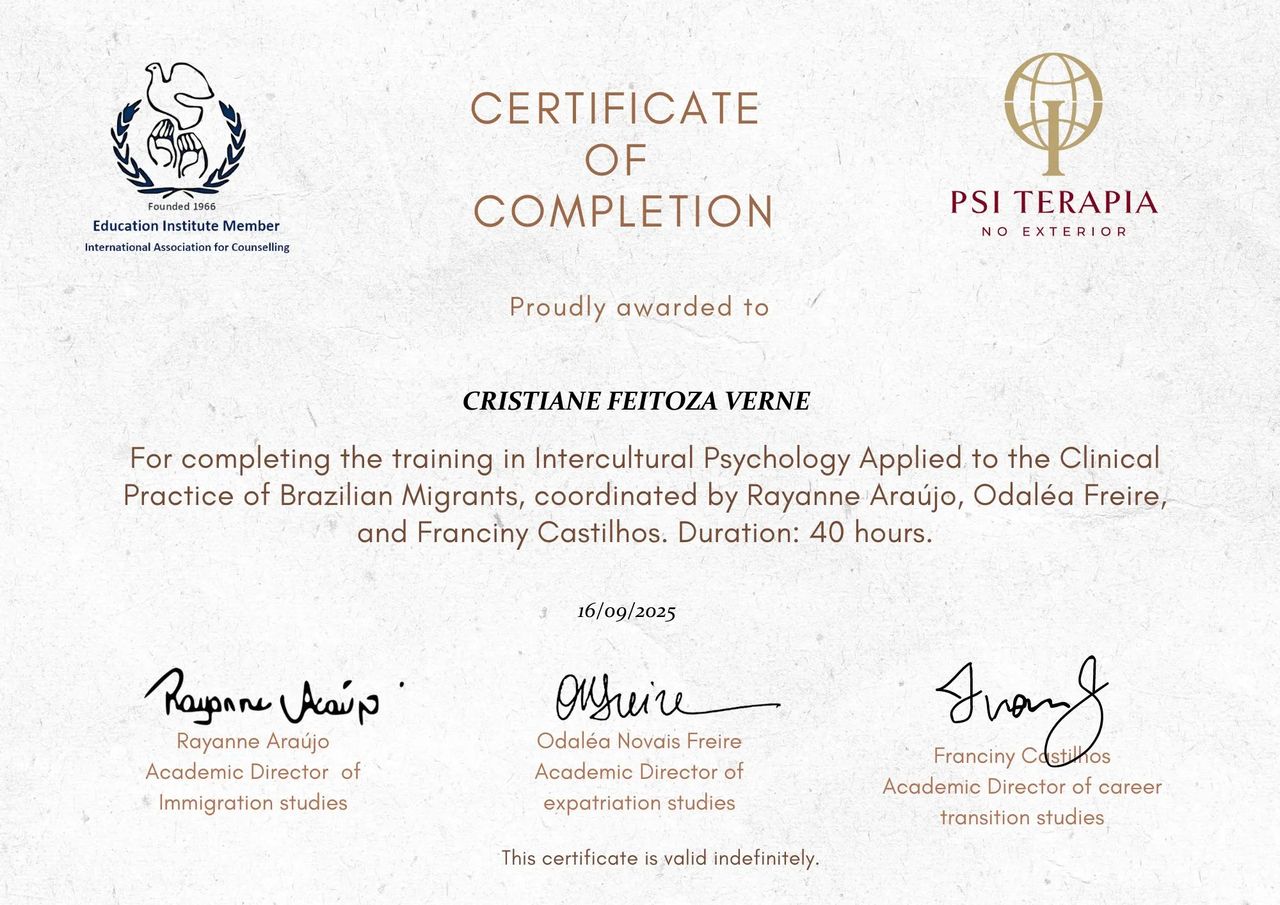 Moro fora do Brasil já faz alguns anos. Estava com dificuldades de encontrar uma profissional no país que moro que me entendesse bem. Com a Cris o meu tratamento fluiu muito bem não só porque ela é brasileira como eu, mas também porque já morou no exterior então ficou muito fácil explicar as coisas. Ela super captou meus problemas culturais e saudades do Brasil.