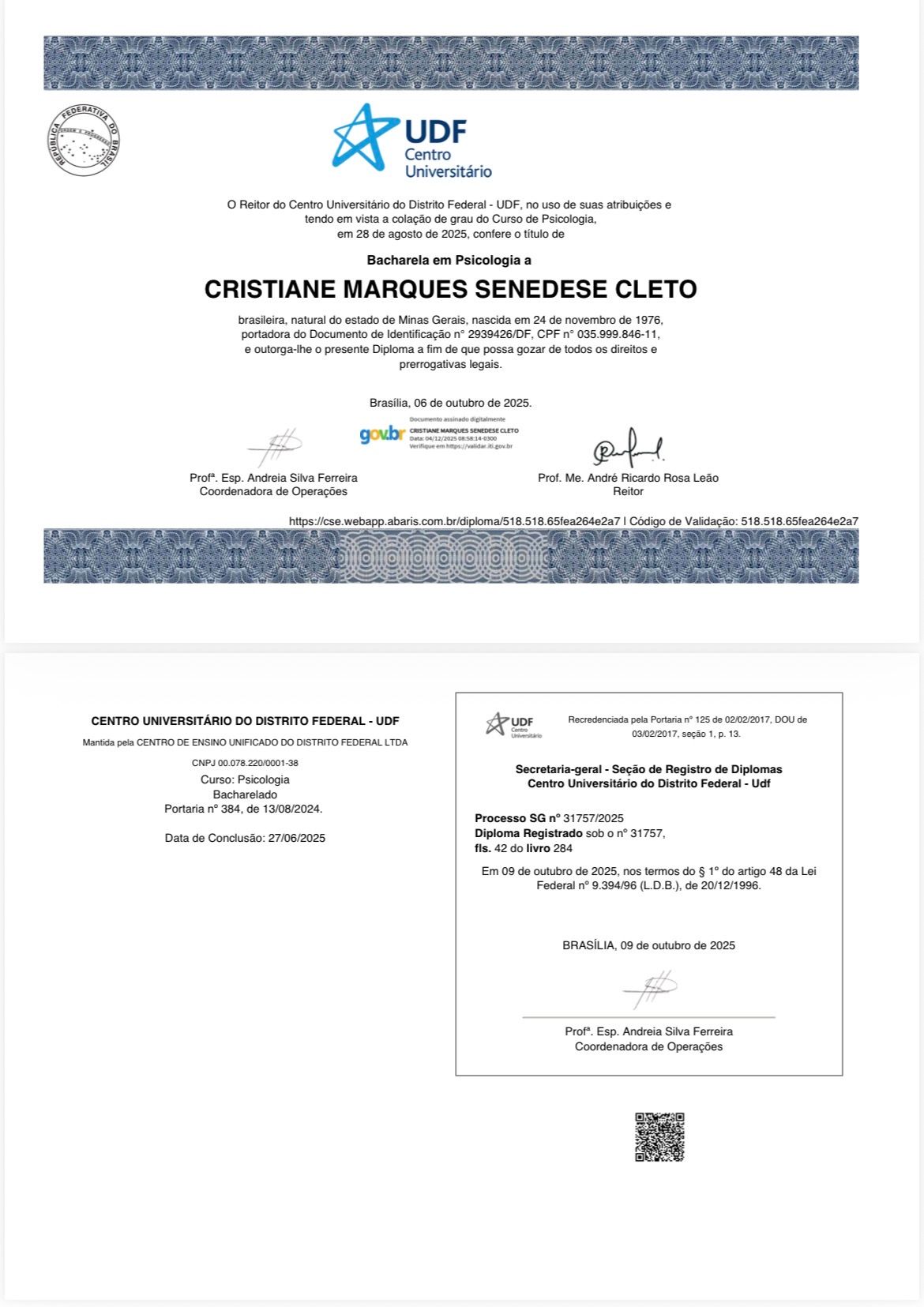 Sou graduada pelo Centro Universitário do Distrito Federal e Pós Graduanda em Gerontologia e Psicopatologia.