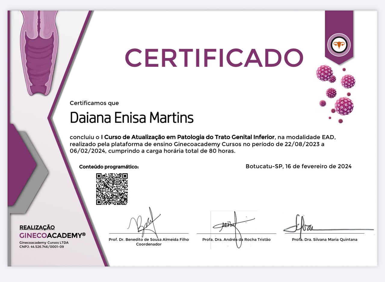 Quais são as principais especialidades de Daiana Enisa Martins ?Daiana Enisa Martins é ginecologista. Te mostramos alguns dos serviços oferecidos pelo especialista graças à sua trajetória e vasta experiência: Consulta ginecologia, Teleconsulta.
