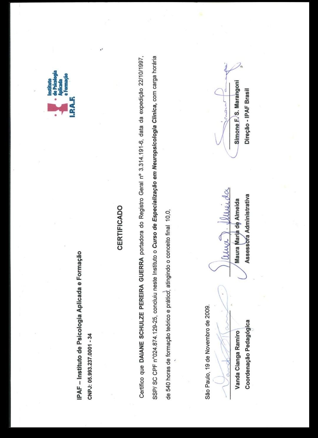 Quais são as principais especialidades de Daiane Schulze Pereira Comarú ?Daiane Schulze Pereira Comarú é psicóloga. Te mostramos alguns dos serviços oferecidos pelo especialista graças à sua trajetória e vasta experiência: Teleconsulta.
