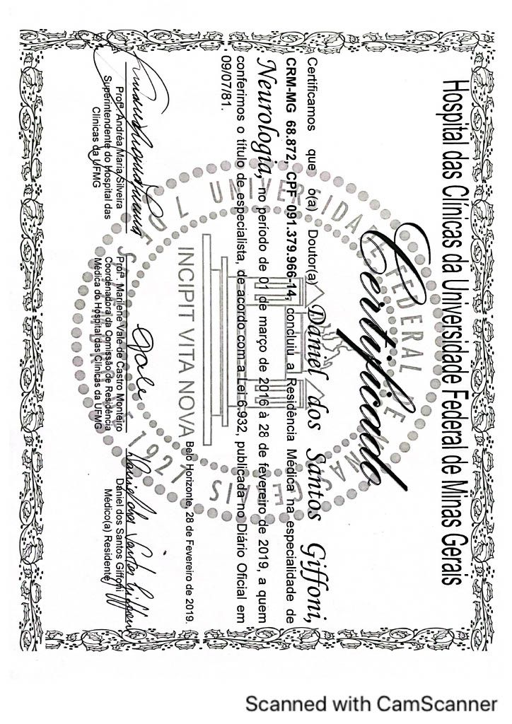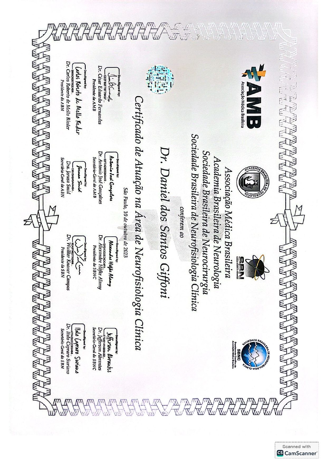 Formado em Neurologia pelo Hospital das Clínicas da Universidade Federal de Minas Gerais - (HC-UFMG), membro Titular da Academia Brasileira de Neurologia (ABN). Neurofisiologista Clínico, membro Titular da Sociedade Brasileira de Neurofisiologia Clínica (SBNC). Realizando aprofundamento em Monitorização Neurofisiológica Intraoperatória pela UNIFESP.