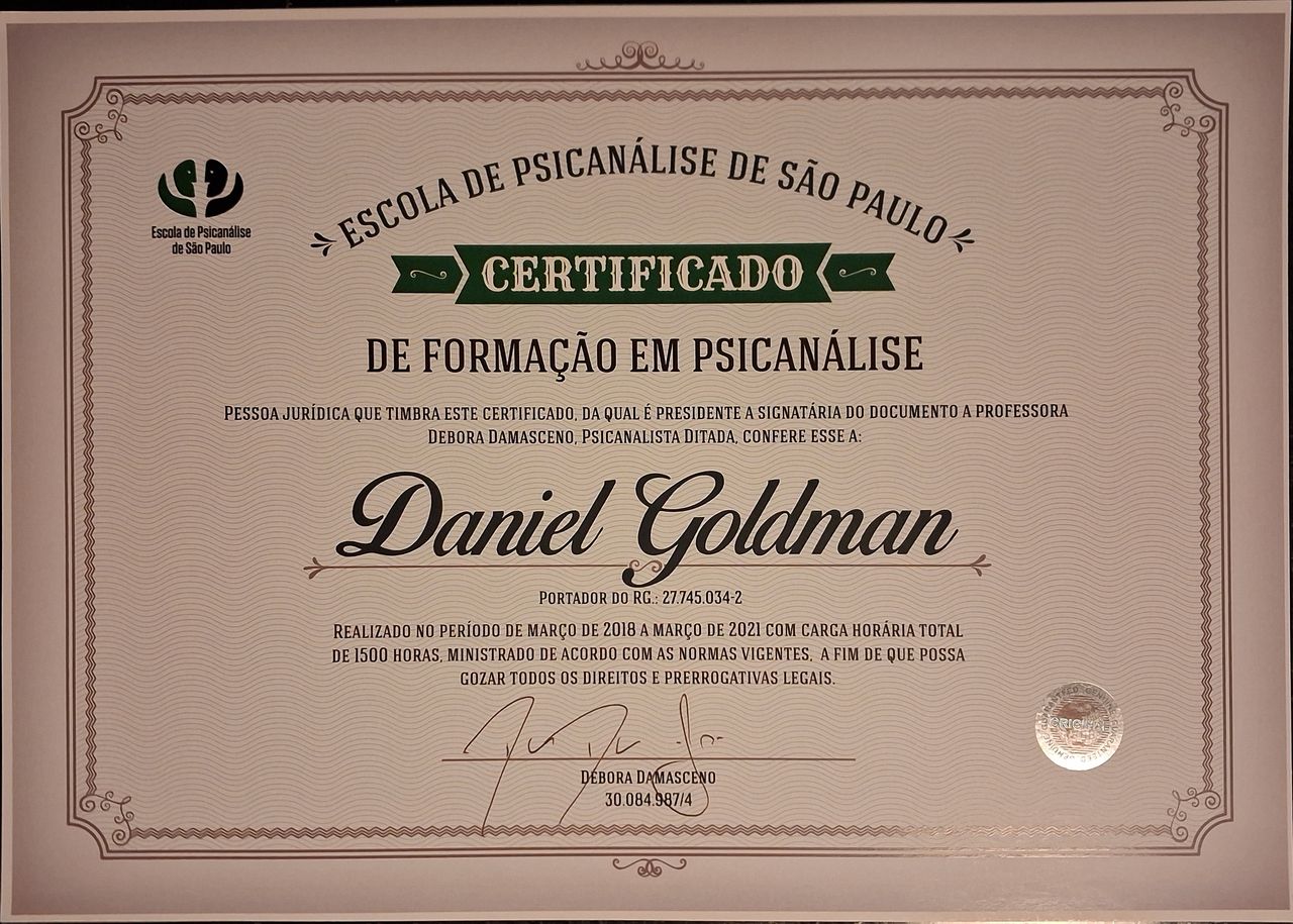Sou psicanalista formado pela Escola de Psicanálise de São Paulo (EPSP). Minha formação teve início no ano de 2018 e se encerrou em 2021, com a apresentação de meu Trabalho de Conclusão de Curso. Minha prática clínica é pautada exclusivamente pela Psicanálise, proporcionando um espaço de escuta qualificado e aprofundado para adolescentes e adultos. Ofereço atendimentos presenciais e online, com sessões de uma hora completa, permitindo que cada análise ocorra com o tempo necessário para o desenvolvimento do paciente. Além disso, disponibilizo a possibilidade de que a análise seja feita em inglês, tornando-a acessível para estrangeiros residentes no País ou pessoas que queiram reunir a prática da língua com o processo terapêutico. Sou portador de certificado de proficiência expedido pela Universidade de Cambridge (Reino Unido), além de experiência prévia como professor do idioma. Meu percurso acadêmico e clínico reflete um compromisso com a psicanálise pura, sem vínculo com o CRP, e com um olhar atento às singularidades de cada sujeito. Meu Trabalho de Conclusão de Curso, intitulado “O Caso Dora – Um Tropeço”, foi orientado pela Profa. Tássia Monteiro Borges e evidencia meu interesse pelo estudo dos casos clássicos da psicanálise e suas implicações na clínica contemporânea. Se você busca um espaço de escuta atenta, sem julgamentos e efetivamente individualizada, entre em contato para agendar uma sessão.