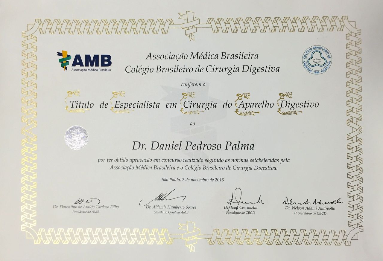 Quais são as principais especialidades de Daniel Pedroso Palma?Daniel Pedroso Palma é cirurgião do aparelho digestivo. Te mostramos alguns dos serviços oferecidos pelo especialista graças à sua trajetória e vasta experiência: Colecistectomia videolaparoscopica, Apendicectomia Videolaparoscopica, Colectomia Videolaparoscopica, Herniorrafia umbilical videolaparoscopica, Herniorrafia Inguinal Videolaparoscopica, Retossigmoidectomia Abdominal, Herniorrafia Incisional, Hernioplastia Hiatal (Cardioplastia) Videolaparoscopica, Herniorrafia epigástrica videolaparoscópica, Consulta Cirurgia do Aparelho Digestivo.