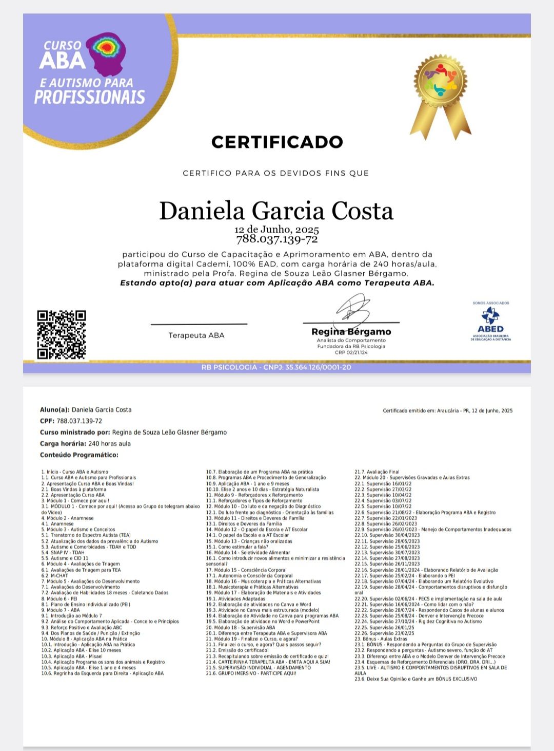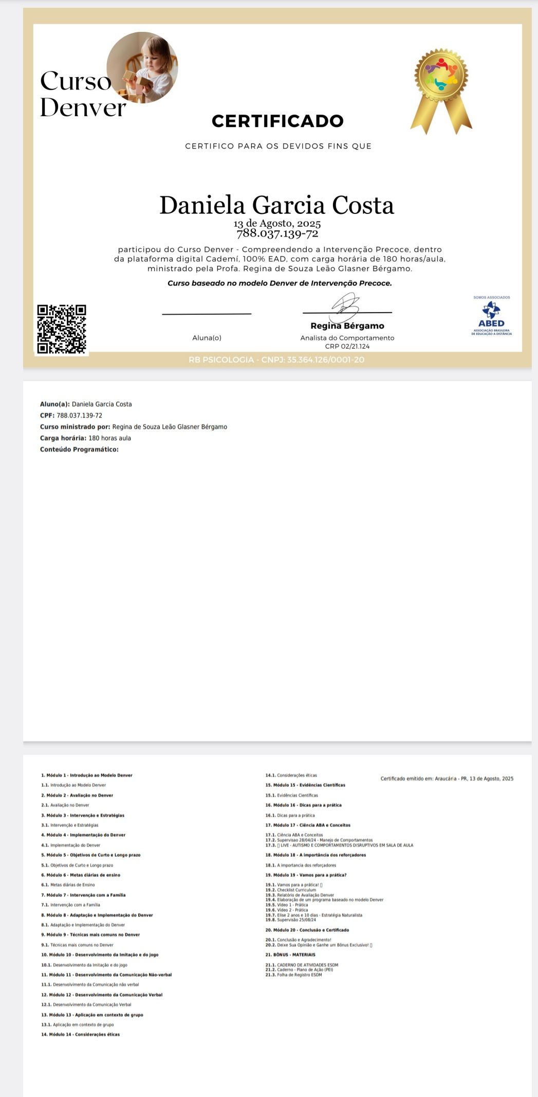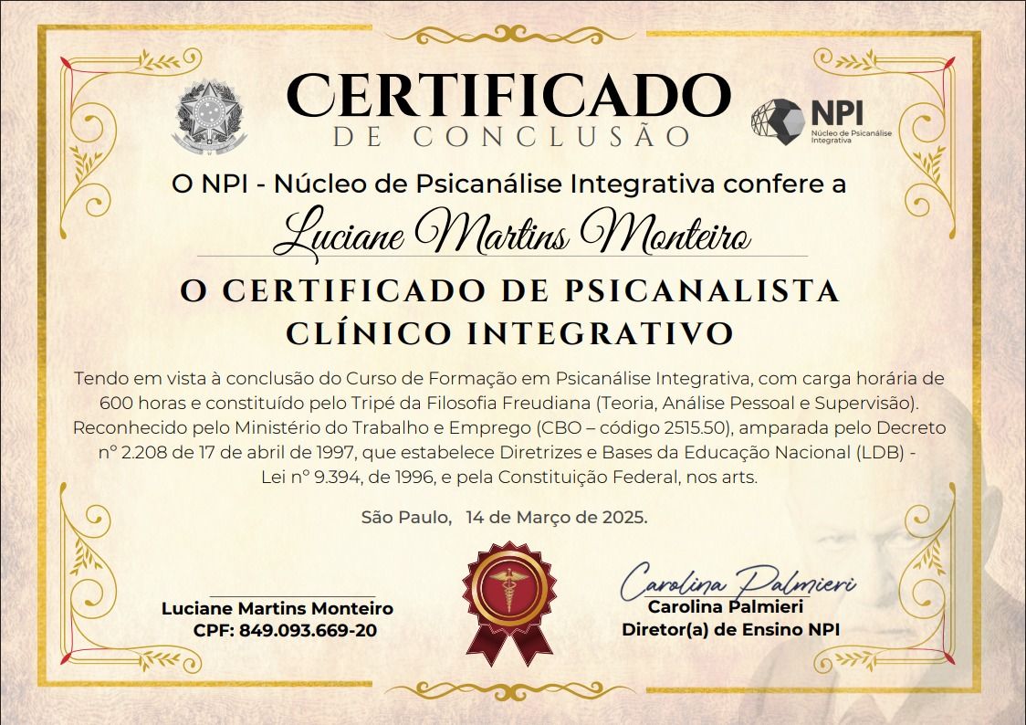 Sou graduada em Psicologia, esposa, mãe, cristã, pós graduada em Psicologia Hospitalar, possuo curso de Psicanálise. Tenho grande amor à minha profissão devido a satisfação de ver a mudança de vida e melhora emocional de quem vem a mim. Também formada em ABA e DENVER para melhor atender as crianças, atendo todas as idades a partir dos 4 anos.