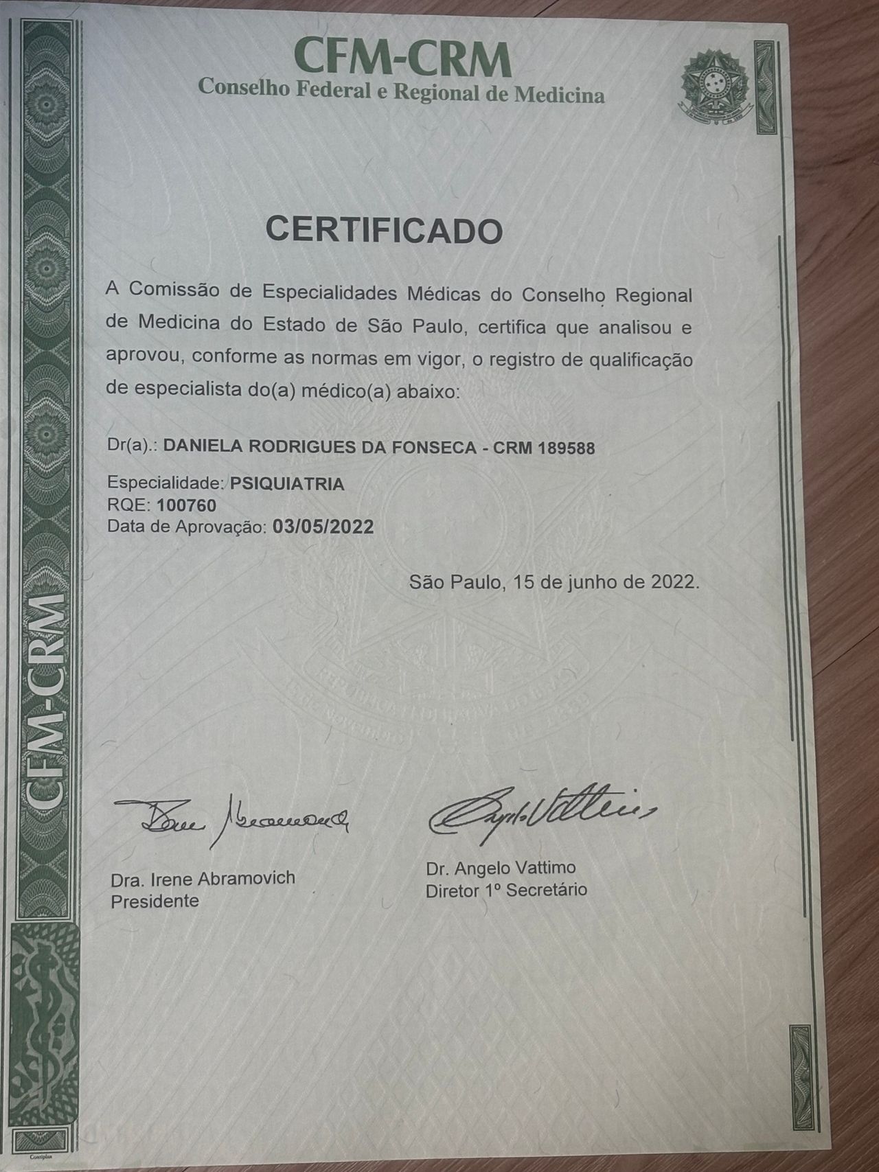Número de registro: CRM SP 189588 - RQE Nº: 100760