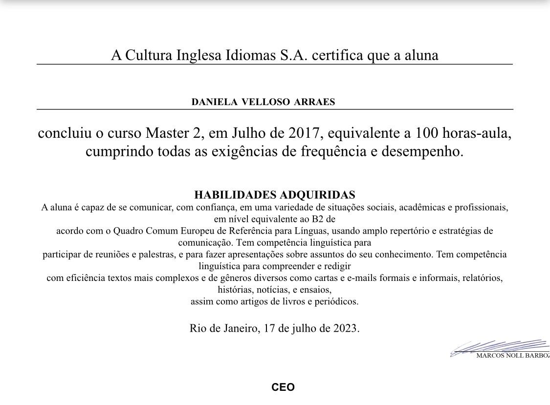 Em quais idiomas Daniela Velloso Arraes atende?Daniela Velloso Arraes atende em Inglês, Português, Espanhol.
