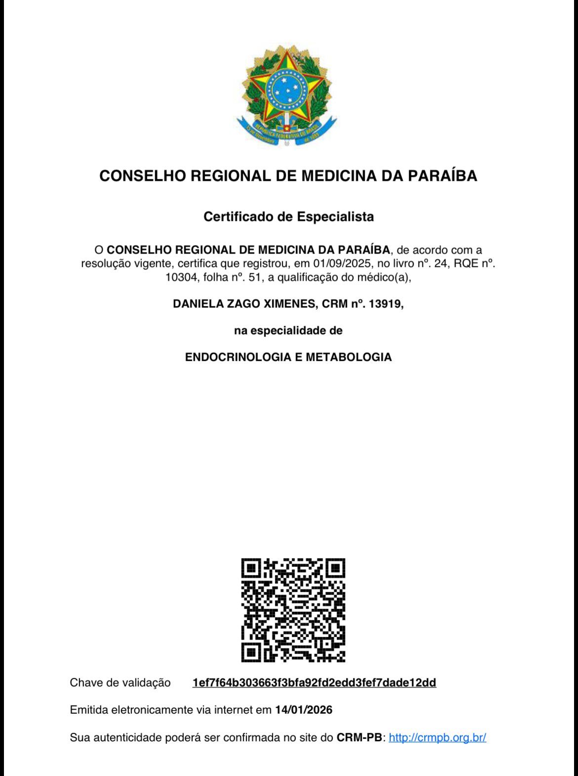Número de registro: CRM PB 13919 RQE Nº: 10304