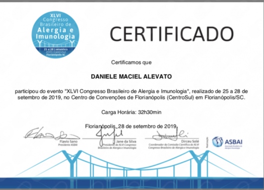 Quais são as principais especialidades de Daniele Maciel Alevato?Daniele Maciel Alevato é alergista. Te mostramos alguns dos serviços oferecidos pelo especialista graças à sua trajetória e vasta experiência: Teleconsulta, Primeira consulta Alergia e Imunologia.