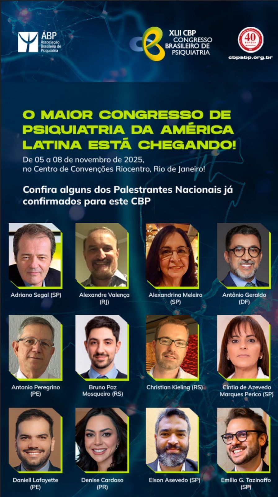 Palestrante confirmado no XLII Congresso Brasileiro de Psiquiatria, irei falar sobre a Insônia.