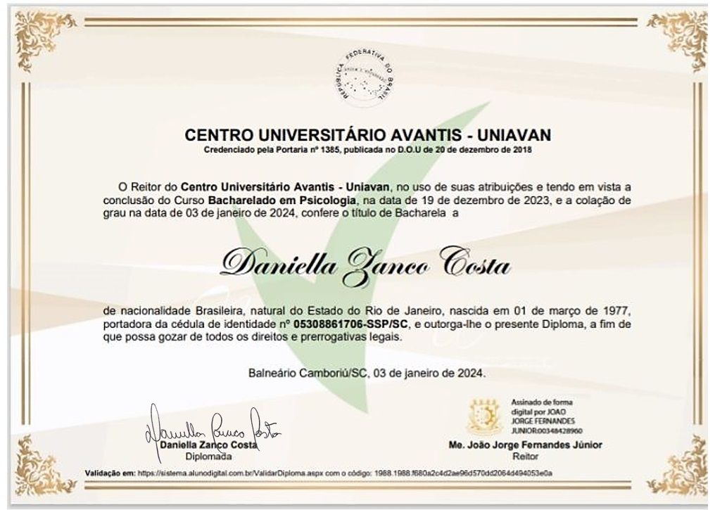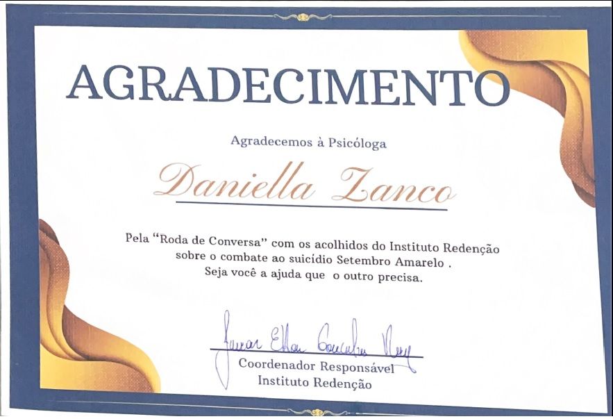 Sou paciente indicado por outro, cheguei até a Dra. Daniella Zanco, e desde a primeira consulta me sinto melhor, e sabemos que ainda tenho muito a melhorar, mas me sinto seguro e confiante em vencer minha ansiedade, já agradeci ao meu Amigo pela indicação dessa profissional super qualificada, que tem me orientado e dado um suporte para alcançar resultados ainda melhores, e assim, minha experiência não poderia ser diferente.
