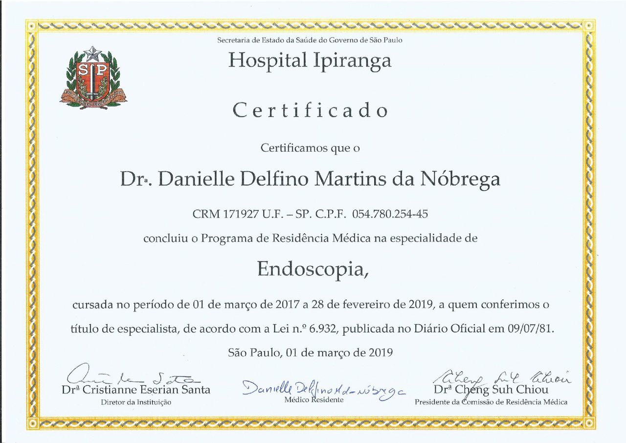 Quais são as principais especialidades de Danielle Delfino?Danielle Delfino é gastroenterologista, endoscopista. Te mostramos alguns dos serviços oferecidos pelo especialista graças à sua trajetória e vasta experiência: Endoscopia digestiva alta, Consulta Gastroenterologia, Colonoscopia com biópsia.