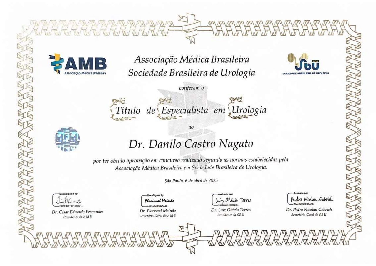 Médico Preceptor da Divisão de Urologia do Hospital das Clínicas da Faculdade de Medicina da USP (HCFMUSP)
