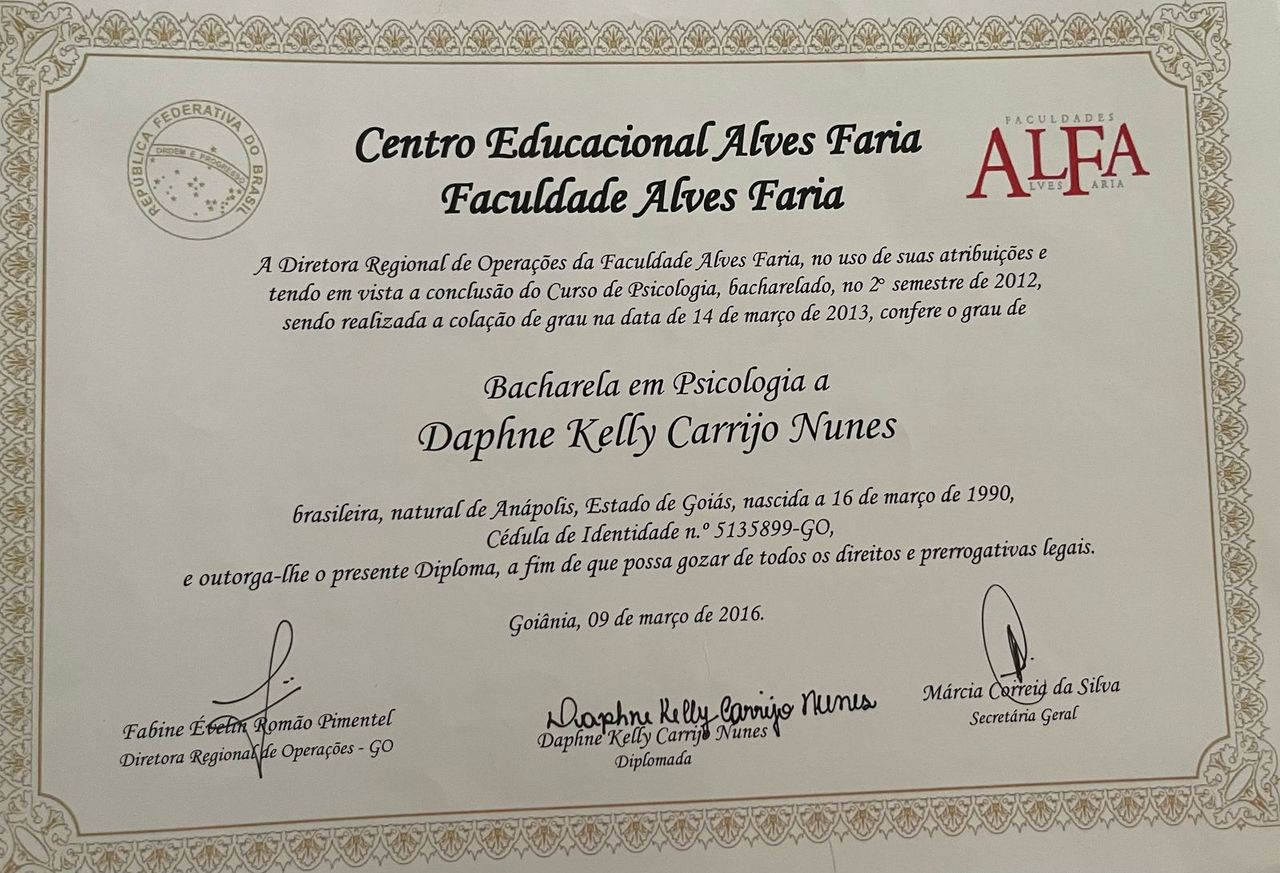 É com grande alegria que te recebo aqui. Meu nome é Daphne, e sou psicóloga, dedicada a guiar você em uma jornada transformadora de autoconhecimento e bem-estar emocional. Permita-me compartilhar um pouco da minha trajetória e como posso ser sua parceira nessa jornada.