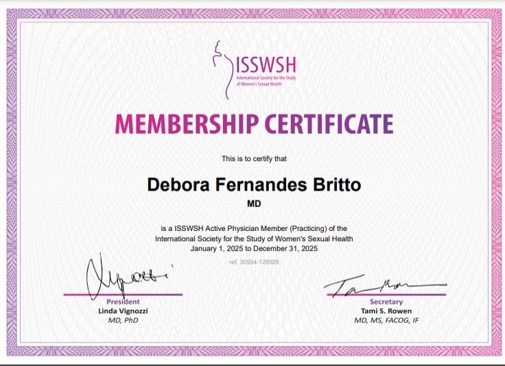 - Associação Brasileira de Estudos em Medicina e Saúde Sexual (ABEMSS) – na qual estou Coordenadora do Departamento de Sexualidade Feminina para o biênio 20025-2026