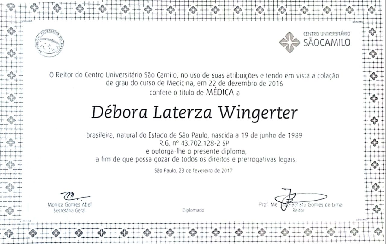 Como posso marcar uma consulta com Debora Laterza Wingerter?O calendário que Debora Laterza Wingerter exibe em seu perfil na Doctoralia é atualizado em tempo real. Tudo o que precisa é escolher o dia e a hora que forem mais convenientes para você. O agendamento é gratuito e você também recebe um lembrete antes da consulta.