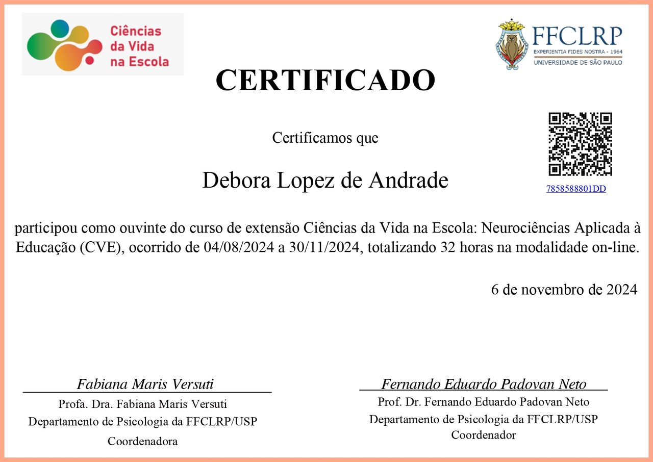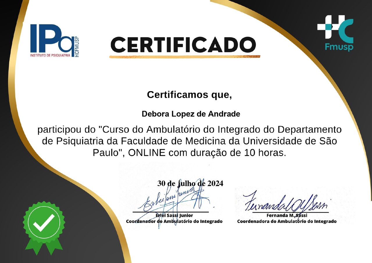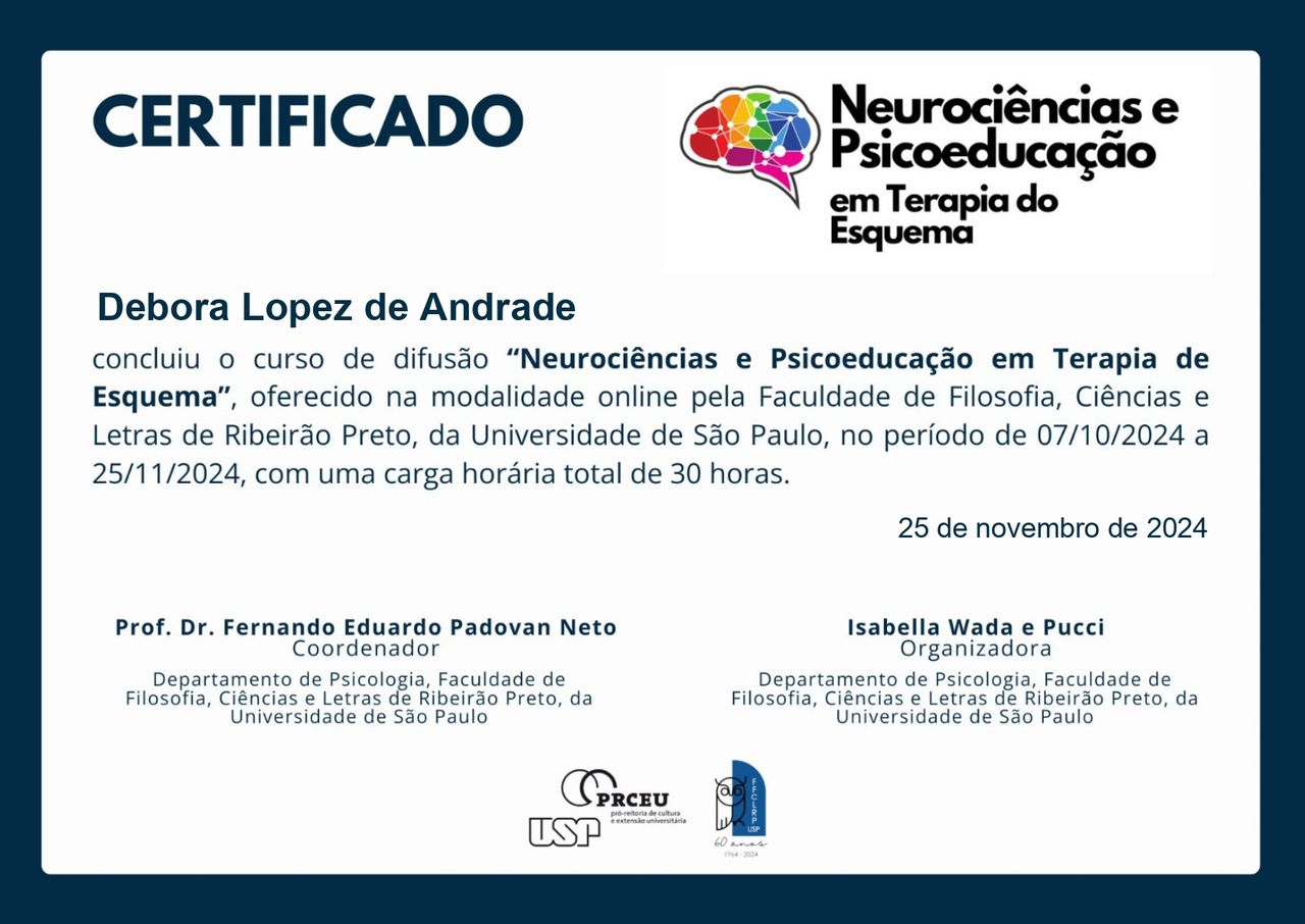 Quando poderia me consultar com Débora López de Andrade?Débora López de Andrade costuma ter horários disponíveis dentro da mesma semana ou para a semana seguinte. Verifique o calendário: você verá o primeiro horário disponível, atualizado em tempo real. Caso o horário sugerido não funcione para você, verifique outras datas. Agendar uma consulta é sempre imediato e gratuito.