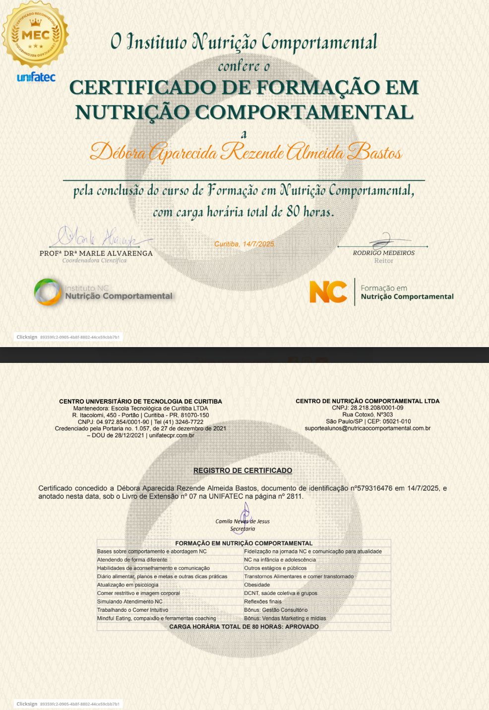 Excelente profissional! Débora é muito acolhedora, atenciosa e explica tudo com muita clareza. Ela levou em consideração minha rotina e minhas preferências. Sua conduta é baseada em evidências científicas e isso me faz me sentir muito segura!