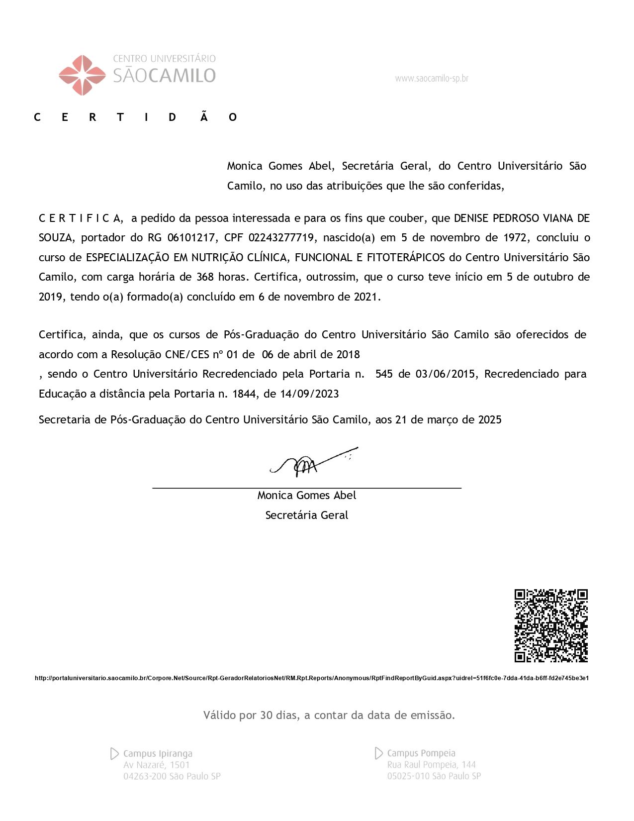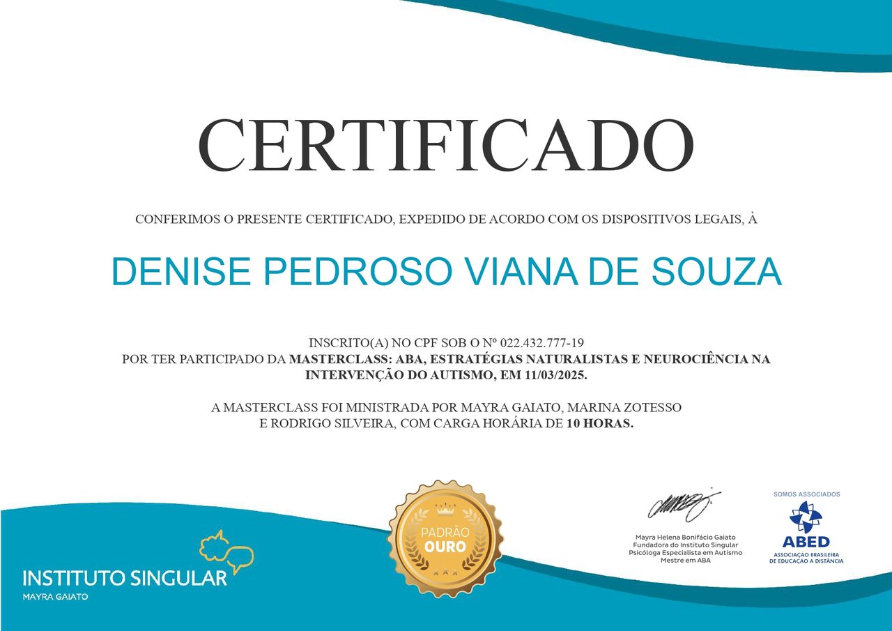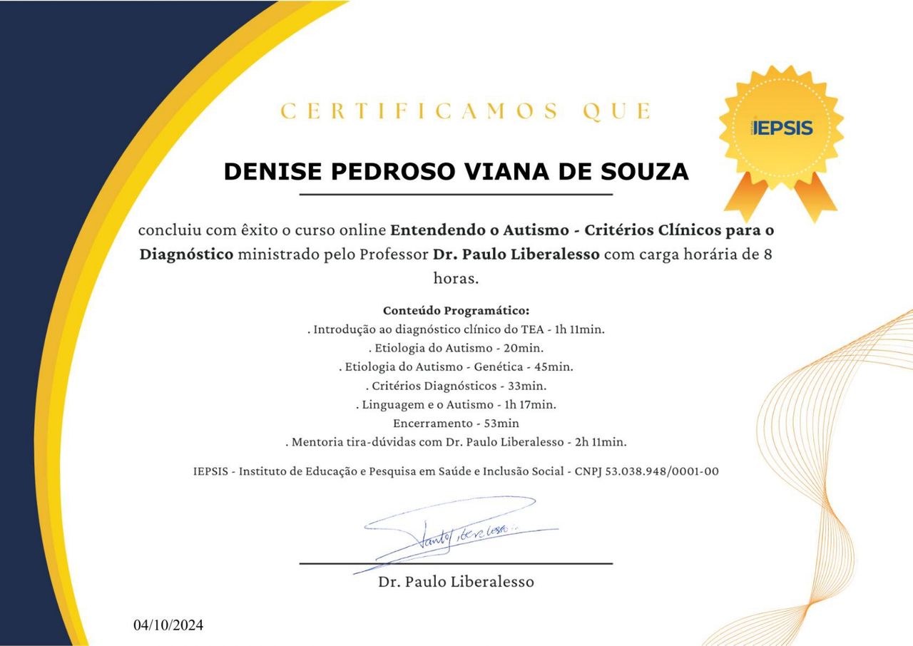 Quando poderia me consultar com Denise Pedroso Viana de Souza?Entre em contato diretamente com Denise Pedroso Viana de Souza para verificar sua disponibilidade.