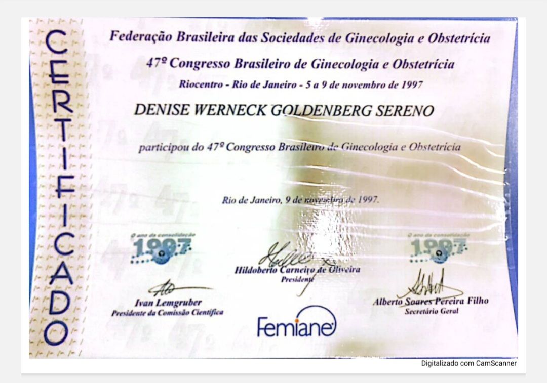 Quais são as principais especialidades de Denise Werneck Goldenberg Sereno?Denise Werneck Goldenberg Sereno é ginecologista. Te mostramos alguns dos serviços oferecidos pelo especialista graças à sua trajetória e vasta experiência: Primeira consulta ginecologia e obstetrícia, Retorno de consultas Ginecologia e Obstetrícia, Consulta pré natal, Consulta Ginecologia e Obstetrícia, Consulta médica, Análise e solicitação de exames, Inserção do DIU de cobre, Retirada do DIU, Preventivo completo, Cauterização de verrugas do HPV.