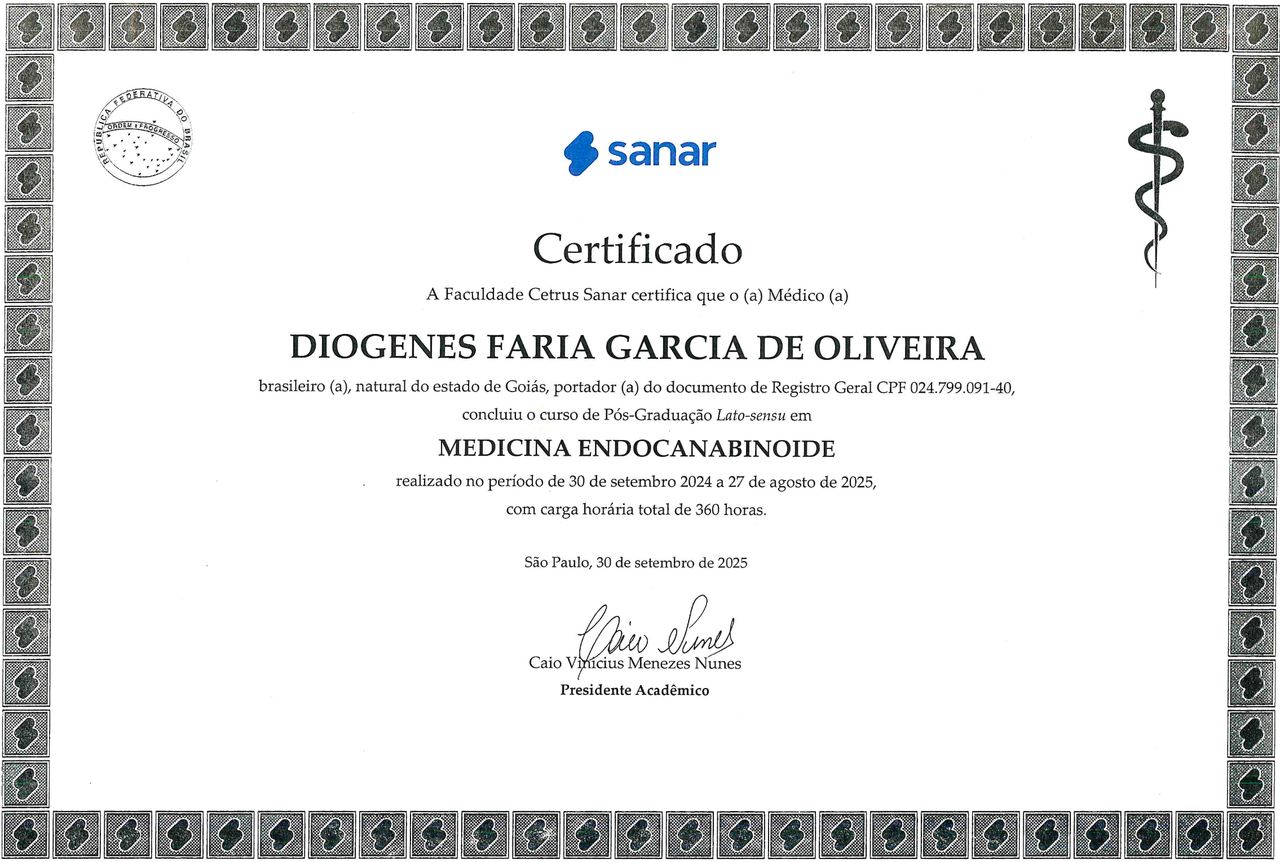 Quais são as principais especialidades de Diogenes Garcia?Diogenes Garcia é médico clínico geral, especialista em clínica médica. Te mostramos alguns dos serviços oferecidos pelo especialista graças à sua trajetória e vasta experiência: Teleconsulta, Canabidiol, Tratamento da ansiedade, Tratamento para fibromialgia, Tratamento da depressão, Tratamento da insônia, Consulta tratamento com canabidiol, Primeira consulta clínica médica.