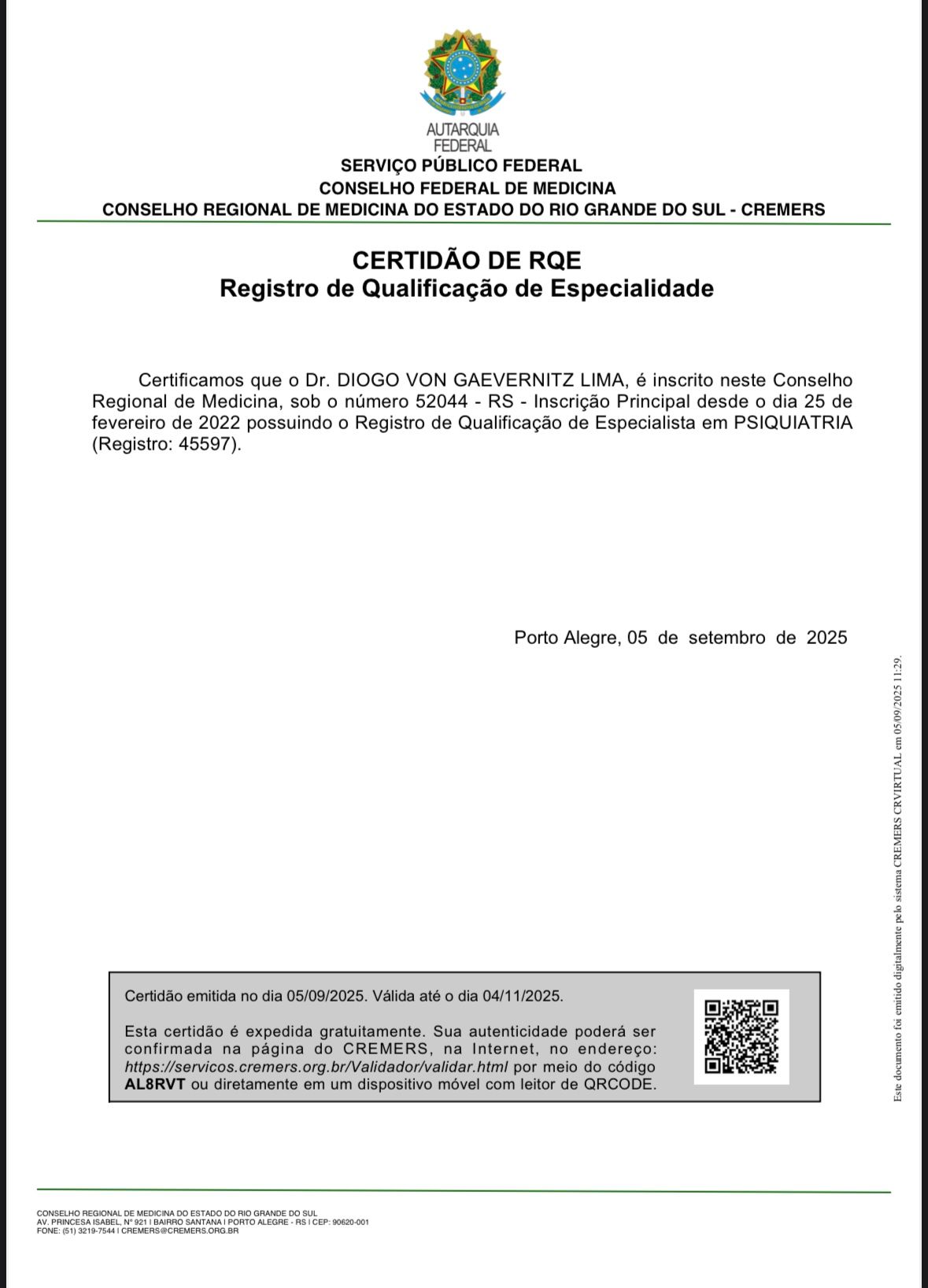 O Dr. Diogo é, sem dúvida, um dos melhores psiquiatras que já conheci. É gentil, atencioso, extremamente competente e acolhedor. Tenho plena confiança em seu trabalho. Sou profundamente grata por todo o cuidado e pelas inúmeras vezes em que ele fez diferença na minha vida.