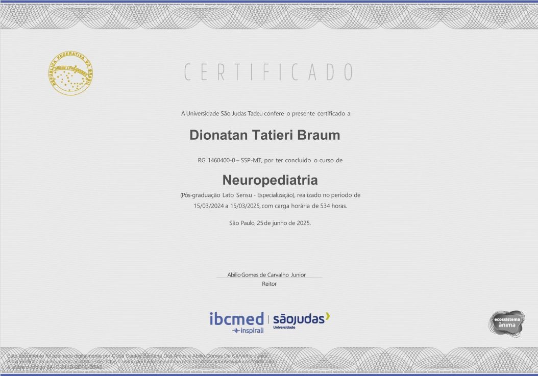 Dr. Dionatan, seu profissionalismo e dedicação são admiráveis. É inspirador ver o quanto o senhor exerce a medicina com competência, sensibilidade e humanidade. Seu cuidado e atenção fazem toda a diferença na vida de quem confia em seu trabalho. Profissionais como o senhor tornam o mundo mais acolhedor e a medicina mais nobre. Um excelente neuropediatra super recomendo.
