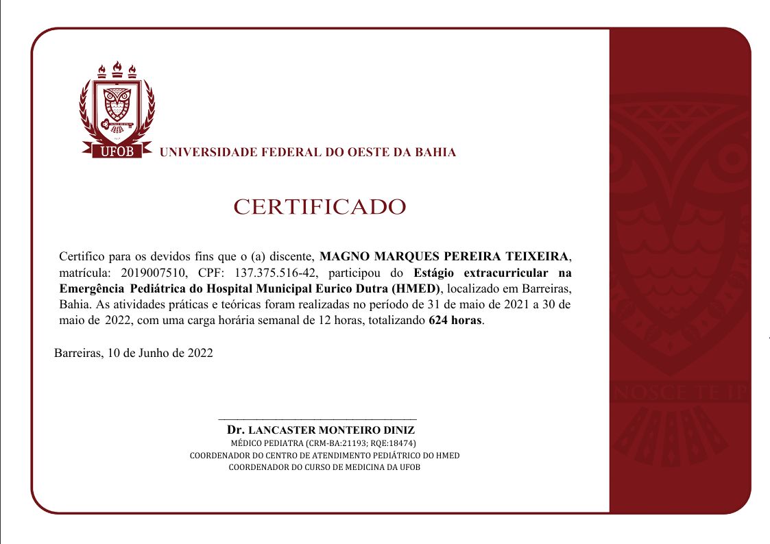Médico formado na Universidade Federal do Oeste da Bahia